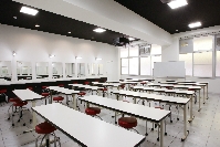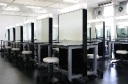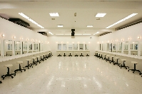 白・黒・グレーを基調としたメイク実習室は、様々なシーンに合わせたメイクを学ぶのに最適!また美容実習室は、実際のサロンの様な教室でカウンセリング〜スタイリングまでトータルで学べます。