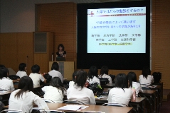 『進路プランニング』の授業で「業界・業種研究」を通して、将来の夢を見つけます。目標とした職業につくための進学先を「進路研究」で探究します。また、具体的には、短大・大学見学、企業見学会を取り入れて連携大学、短大等で学生と一緒に授業を受けたり「インターンシップ制度」で実際に業界を体験します。